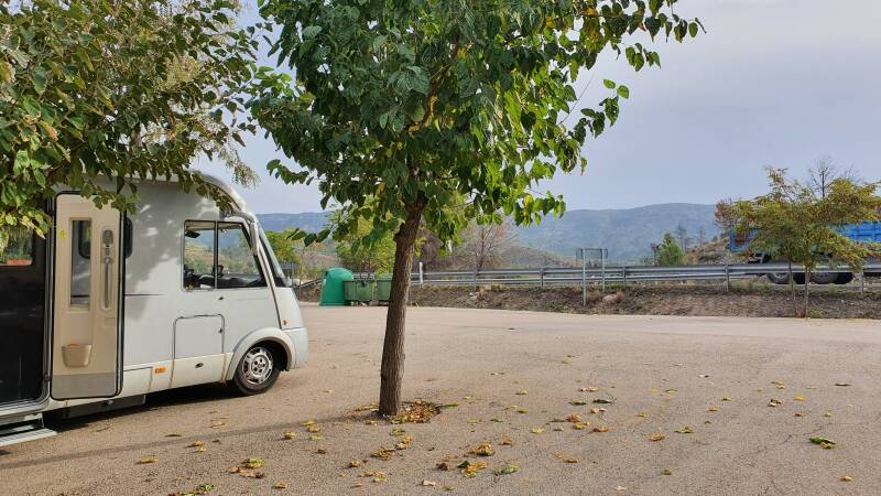 Vanmorgen pas om half negen wakker en voel me behalve wat spierpijn eigenlijk heel goed. Marjos voelt zich ook weer wat beter, dus dat gaat de goede kant op. Hier blijven rondhangen op de CP vinden we niet aanlokkelijk dus na de lunch bekijken we waar we naar toe kunnen gaan. Ons oog valt op een mooie bergroute, die ons naar Jalance moet brengen. De route is inderdaad schitterend, kleine weggetjes in soms echt miniformaat, zeker voor de camper, stijgend, dalend en slinger-de-slanger. De omgeving is prachtig met veelal op bergtoppen gelegen kasteelruïnes en ook doorkruisen we een mooi natuurgebied. Bij Ayora steken we de wat grotere N330 op voor de laatste 20 kilometer naar Jalance. De CP ligt buiten de stad onder bomen, tegen de N330 aan. Bij aankomst staat al een andere camper, dat is altijd een goed gevoel. In de avond nog een kaartje gelegd en toch weer besloten op tijd te bed te gaan.