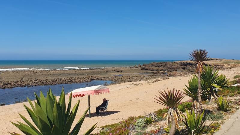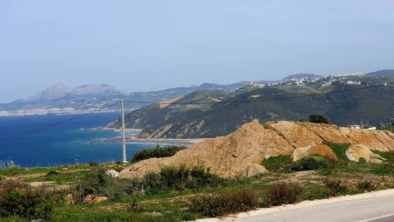 Vlakbij de haven nemen we eerst poolshoogte bij de beoogde overnachtingsplek in Ksar en dat ziet er goed uit. We rijden nog wat verder door om te kijken of voorbij de haven nog betere opties zijn, maar treffen die niet. We hebben zo aan het begin van de middag nog wat tijd over en we rijden pal langs de kust een stukje richting Tanger. Het landschap bestaat uit verschillende heuvels, waarop zeker aan de kust mooie huizen zijn gebouwd. Het geheel doet on-Marokkaans aan, meer Europees.