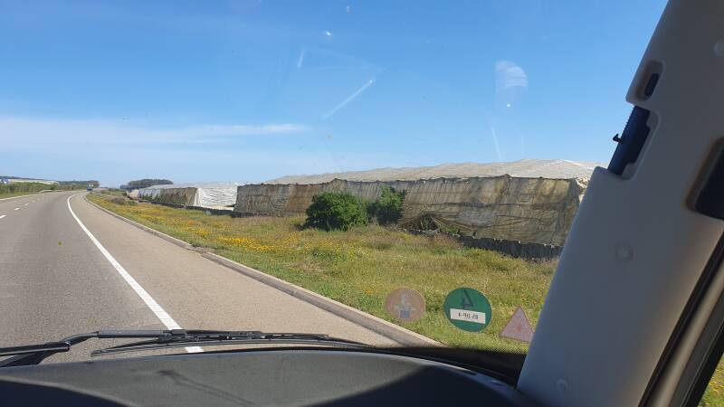 Het contrast met de overvloedige regenval hier kan niet groter zijn. Dan volgt een stuk met plastic bedekte kweek, veelal bananenteelt. Het heeft veel weg van de spuuglelijke Mar de Plástico in Zuid-Spanje en breidt zich zo te zien steeds verder uit. Niet de fraaiste ontwikkeling. De rit over de snelweg blijft overigens een saaie bedoening en in de buurt van Larache ben ik het zat. We pakken voor het laatste gedeelte de veel leukere binnenroute over de N1.