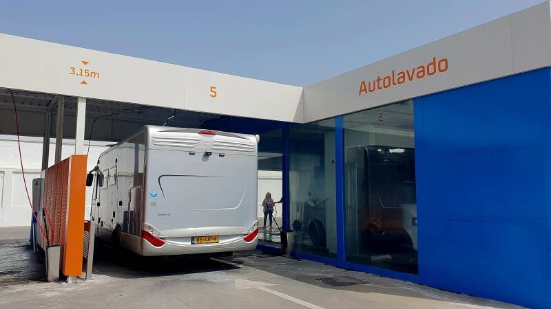 Zo rond het middaguur arriveren in Jerez, waar we eerst een bezoek brengen aan een lavandería bij een tankstation. Hier kunnen we in grote (18kg) wasmachines en drogers onze verzameling was- en beddengoed van de laatste weken kwijt. Terwijl de was draait neem ik de gelegenheid ten baat de camper te wassen in de grote lavado met alle hulpmiddelen. Het Marokkaanse vuil verdwijnt als sneeuw voor de zon 😄.