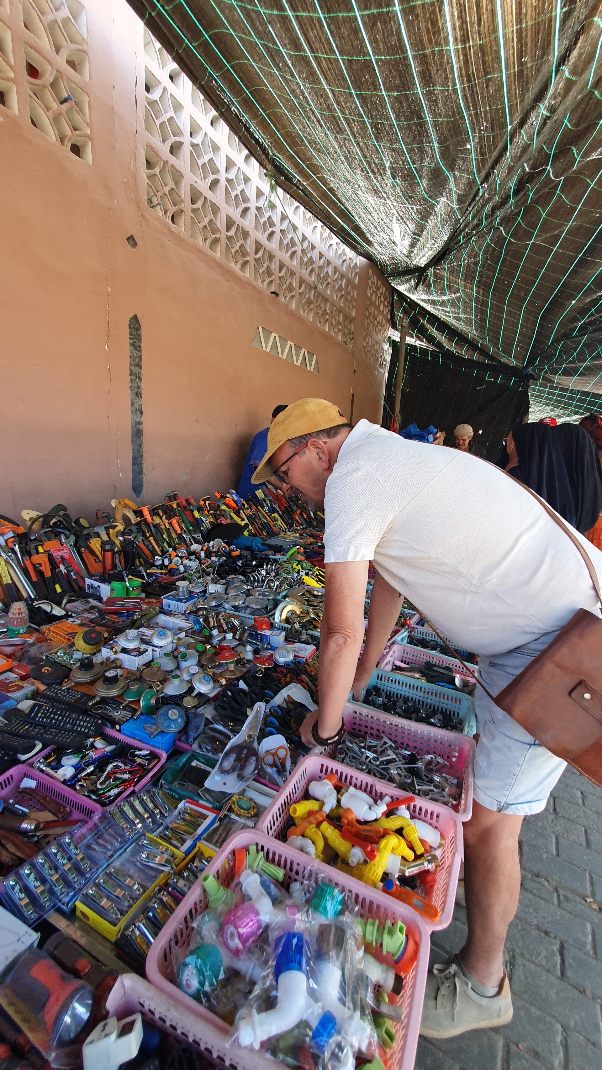 Na de lunch kijk ik met Pieter naar het gasprobleem. Nadat we de bestaande slang hebben doorgesneden om een aansluitkoppel te handhaven, komen we tot de conclusie dat we zelf niet verder komen. Ik tuf met de scooter naar het dorp en vind een zaakje waar met inventiviteit een nieuwe aansluiting wordt gefabriceerd. En eenmaal gemonteerd op de nieuwe Afriqia-fles draait alles als een tierelier, pfff. Merci bien Pieter voor de raad en fijne bijstand πŸ™πŸ™.
