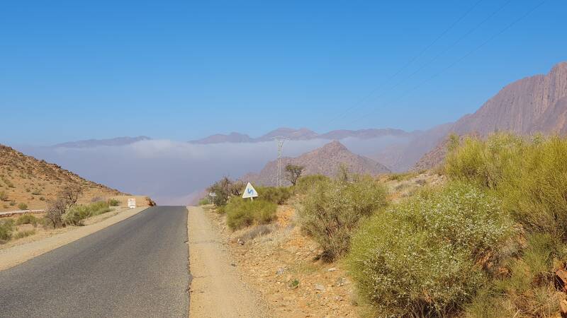 Wederom verandert het landschap qua kleuren en rotsvormen. De oh's en de ah's zijn niet uit de lucht en Marjos vertelt achteraf vandaag 250 foto's en video's te hebben gemaakt. We rijden soms langs grote palmerieën die duidelijk last hebben van de droogte. Bij Talbourte slaan we af op de veel bredere en uitstekende R109, waar we kunnen controlcruisen. Nog steeds imponeert het uitzicht, het is groots, kaal en woest.