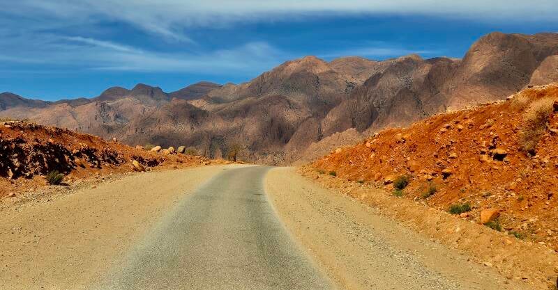 Niet ver na Biougra vertelt Googlemaps dat de route voorlopig over de P1012 zelfs wat minder kilometers is als het blijven volgen van de R105. Ondanks dat de weg iets versmalt is het asfalt glad en perfect te berijden. Bovendien is er geen verkeer en slingert de route zich door ruraal Anti Atlas, fantastisch.