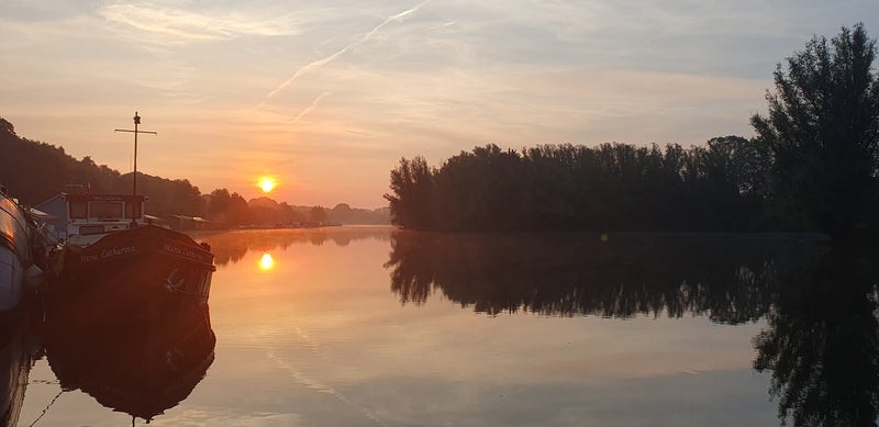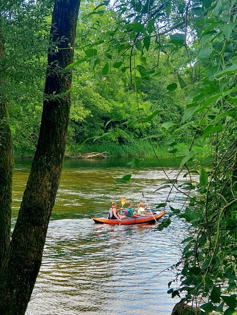 Later op de ochtend komen ze aansnellen en vragen of ze de rivier mogen afzakken met de vader van Sophie in een meegenomen kano. Na poolshoogte te hebben genomen, wie, wat, hoe, waar, gaan paps en mams akkoord en steekt de kano van wal. In de middag maken we op het terras, onder het genot van een drankje echt kennis met de ouders van Sophie en Lucas, Bram en Marleen. Het zijn vriendelijke Noordhollanders, volledig waterpolo-gek en net als wij kamperend in Frankrijk voor een paar weken, leuk. Als het gesprek op koken terecht komt stelt Sophie dat vader Bram de lekkerste risotto kan bereiden. Dat noopt tot aktie. Bram maakt morgenavond risotto en wij zorgen voor verdere begeleiding in de vorm van BBQ, drinken en een toetje. Gezellig iets om naar uit te zien. We nuttigen een eenvoudige hap op het terras en trekken ons terug bij de camper. De kinders ravotten nog lang door.
