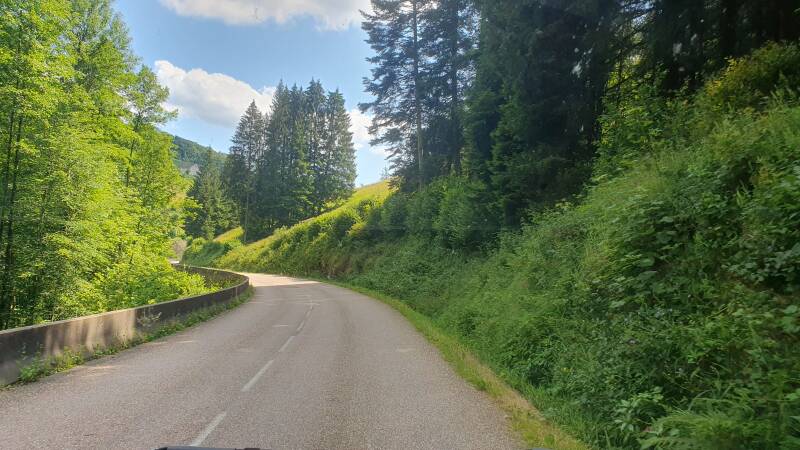 Na Metz en Nancy slaan we af naar de N57 richting Épinal. Niet ver voorbij Remiremont bereiken we de camping in het thermaal-stadje Plombières-les-Bains, wat mooi tussen de heuvels van de Vogezen is gelegen.
