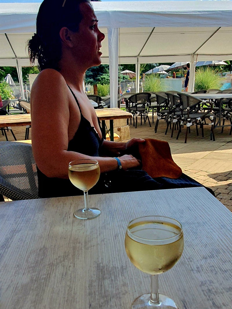 De beste remedie tegen de middagwarmte is toch een plons in het zwembad, heerlijk.