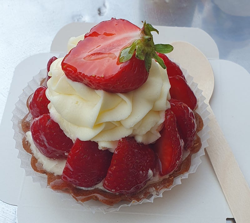 In een schoenenwinkel meet ik mijzelf een paar nieuwe gifgroene 😄 linnen zomerstappers aan, alvorens met zijn allen wat te drinken en patisserie te nuttigen op een terrasje, recht tegenover de kathedraal.