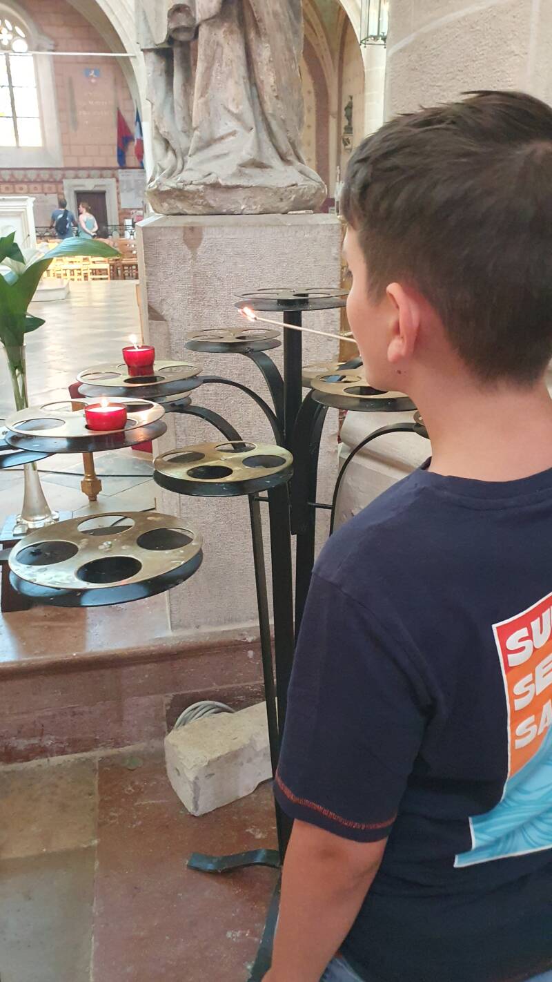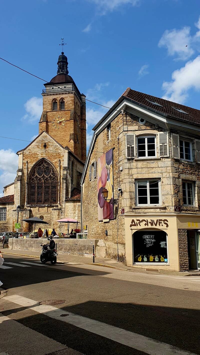 Daar torent de oude kerk Saint Just op, waar we we een blik op het interieur werpen. Prachtige dingen worden via mooie glas-en-loodramen uitgelicht. Achter de kerk zien we een bewaard gedeelte van de middeleeuwse vestingwerken die Arbois in boze tijden bescherming moesten bieden.