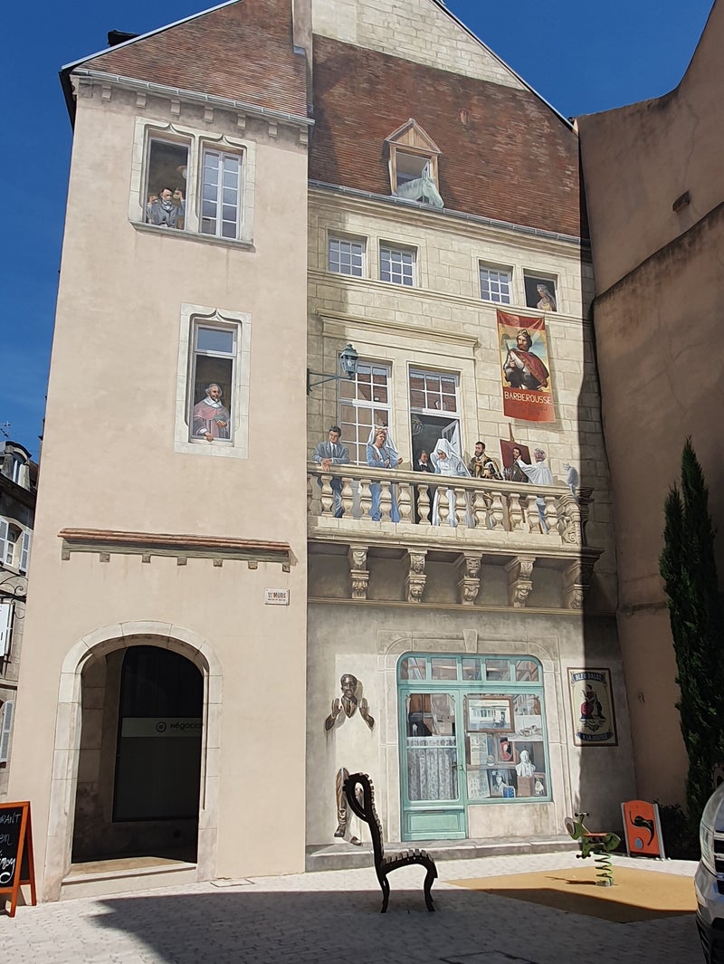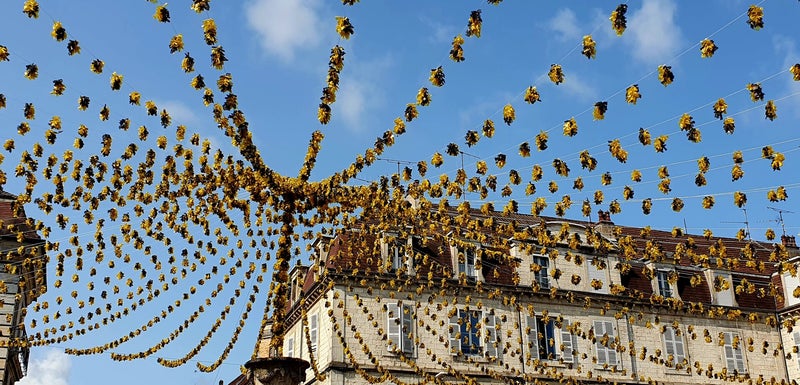Op Place de la Liberté zetten we ons op een terras voor een lekkere kop koffie. In het midden van dit plein met zijn vele winkelarcaden staat de decoratieve Brunnen van waaruit kleurige slingers uitwaaieren over het hele plein.