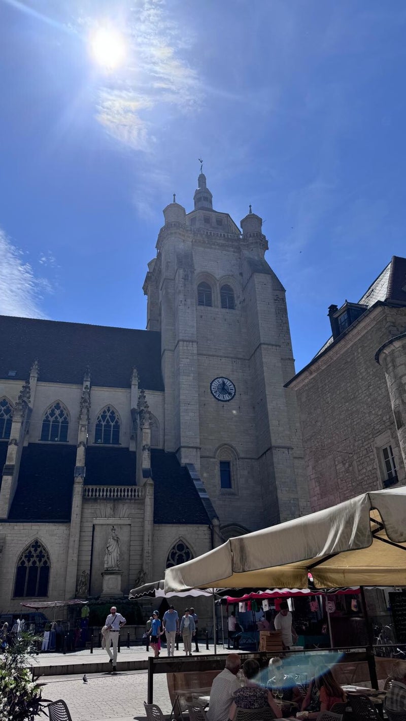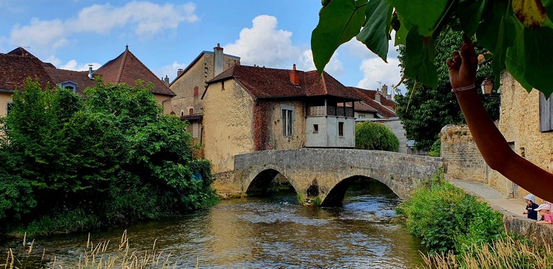 Onze stadswandeling voert ons langs goudgeel kleurige gebouwen en over de Cuisance, het riviertje wat de stad doorsnijdt.