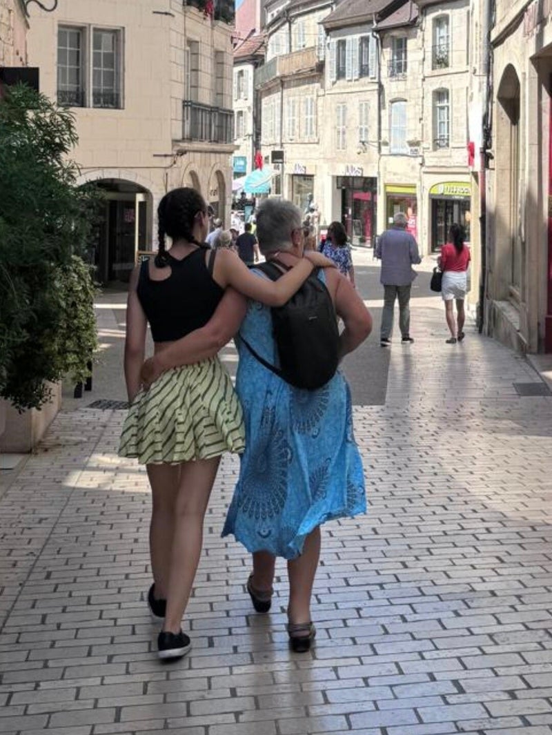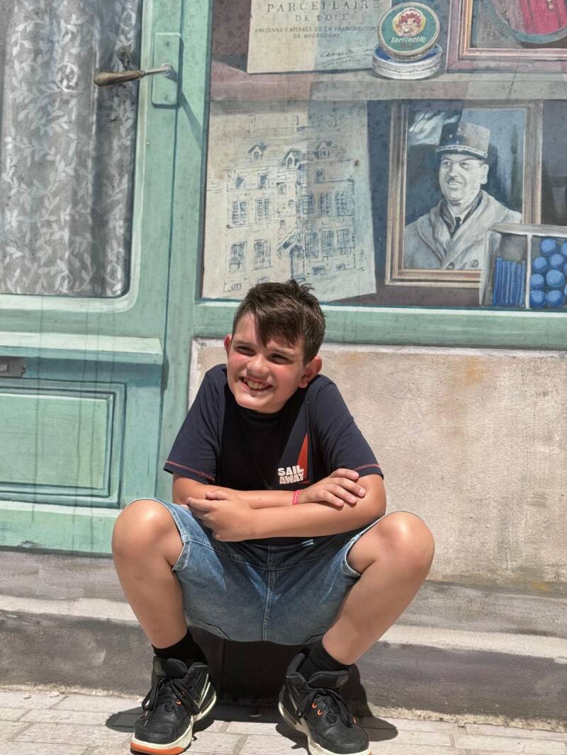 Binnen 25 minuten zijn we terplekke, parkeren de auto en wandelen het oude centrum in van het pittoreske stadje. De 13e eeuwse stad kent een bewogen geschiedenis en is uiteindelijk definitief in handen gekomen van Frankrijk toen het in 1678 op de Spaanse Habsburgers werd veroverd. In de authentieke straatjes maken winkeltjes en horeca een voorzichtige start van de dag en openen deuren en (rol)luiken. Een straatzanger 🎶 die zichzelf begeleidt met een oud handorgeltje doet een goede poging de nieuwe dag in te luiden. Vrolijk op de maat zwiert Michelle met Luna over het gladde plaveisel onder een goedkeurend oog van de orgelman.