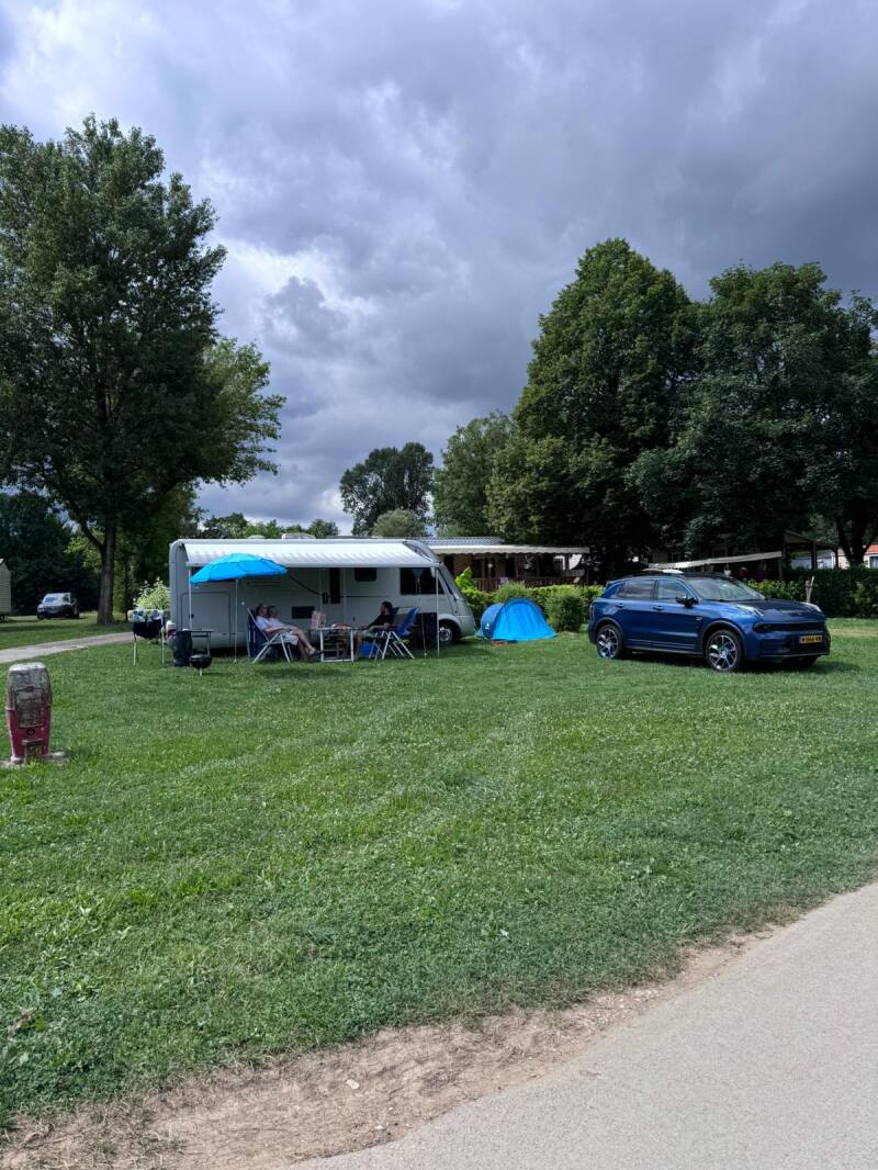 Luna en Xavi vonden al die vertraging niet erg, die hebben nog gezwommen en getafeltennist. De eerste 100 kilometer rijden we over fantastische goed berijdbare binnenwegen, die met luie slingeringen door het mooie landschap gaan en weer snel dat prettige geniet-gevoel in ons terugbrengen. Wat is het hier weer mooi. Na Besançon duiken we op de tolweg en om twee uur arriveren we op de camping in Parcey. Een camping die er verzorgd uitziet, ruim is opgezet en zeker veel perspectief biedt voor het grut met onder andere zwembaden en veel jeugd van Nederlandse komaf, joepie!