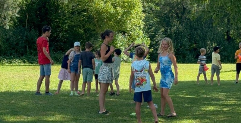 Na het ontbijt worden de eerste spullen, zoals kampeertafels en stoelen naar de nieuwe plek gebracht. Provisorisch ruimen we de camper wat aan kant en rijden we naar de betere stek. Luifel uit, kop koffie en zie we hebben ons alweer geïnstalleerd 😄. De kinders vermaken zich tijdens deze verhuisoperatie door deel te nemen aan een groepsactiviteit voor campingjeugd, schuin tegenover ons.
