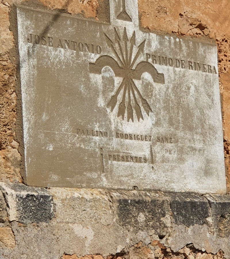 In afwachting daarvan pakken we de scooter en trekken erop uit. Nog voordat we het dorp verlaten zien we op de oude kerk een plaquette, waarop de naam José Antonio Primo de Vera wordt vermeld. Een belletje rinkelt in mijn hoofd, is dat niet die fascistische oprichter van de Falange, ten tijde van de Spaanse burgeroorlog?