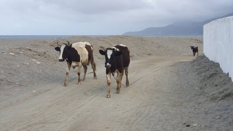 En wakker worden door het kalmerende geluid van golven die omslaan op het strand is een aangename welkome exercitie na al die valszingende muezzins. Na Oued rijden we omhoog de steile kliffenkust op. Uiteraard worden we vervolgens verwend met een mooi uitzicht over de nog enigszins heiige kustlijn.