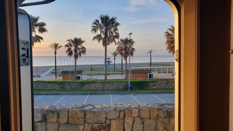 Rond 16.00 uur arriveren we in de haven van Algeciras en nemen we afscheid van Kees en Trui, zij gaan een andere kant op. Eenmaal van het haventerrein af tank ik bij een station LPG, het levert een nare ervaring op. Een vrouw komt aanrijden en schampt met haar auto langs de zijkant van onze stilstaande Hymer. Wielkast, onderschermen, lijstwerk en garagedeur met houders zijn beschadigd. En ze heeft geen polisdocumenten en/of rijbewijs bij zich. Tot overmaat van ramp komt de opgetrommelde politie uiteindelijk toch niet en volstaan we uit armoe maar met een ingevuld schadeformulier.