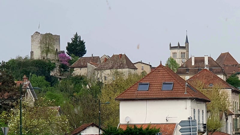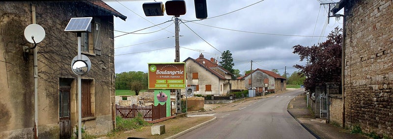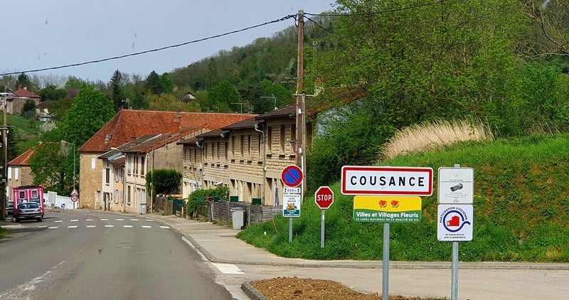Onze eerste overnachtingskeus in Coligny bevalt ons niet en bij de eerst-volgende mogelijkheid 6 kilometer verderop in St. Amour hebben we nul internetbereik. We rijden nog eens 12 kilometer door om in Cousance een plekje te vinden op een CP die wel aan onze criteria voldoet.
