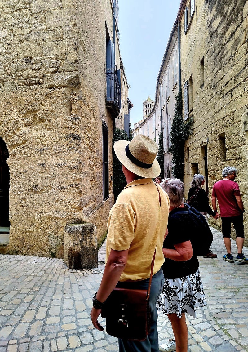 Kees en ik slenteren wat vooruit en bezien de oude gebouwen met hun robuuste stenen muren. Op een pleintje in het hart van het centre historique consumeren wij een bakske koffie, daar zijn we aan toe.