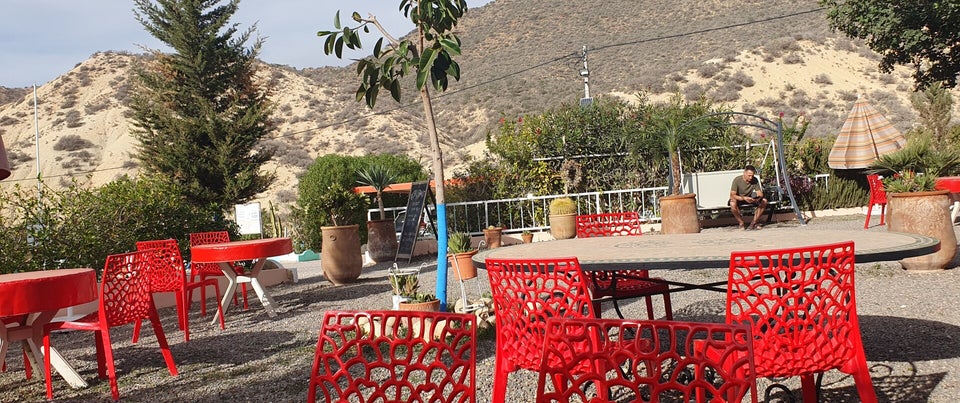 Op zo'n 20km van de eindbestemming, zoek ik via Maps een plekje om even te stoppen voor de lunch, want langs de weg komen we niets tegen. We komen uit in Oulad Teima, waar verder niet veel te beleven valt. We stranden op een mini-terrasje bij een lokale bakker en drinken een kop koffie met een gebakje. Omdat we alle drie eigenlijk nog niet echt trek hebben (en ik ook echt merk dat pap zijn best doet, maar zich totaal niet lekker voelt) besluiten we de lunch over te slaan en verder richting vliegveld te gaan. Rond 13:45 uur arriveren we daar en neem ik afscheid van pap en mam, nadat ik ze heel erg heb bedankt voor de afgelopen dagen. Samengevat in drie kernwoorden: superleuk, bijzonder en erg gezellig. 🙏