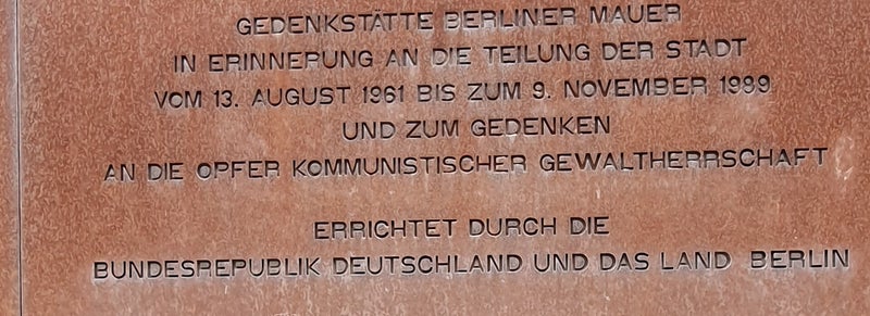 Na een kop koffie brengt de tram ons in luttele minuten naar de Bernauerstraße ter hoogte van de Ackerstraße. Daar stappen we uit en bezichtigen we een stukje oorspronkelijk Berlijnse muur wat met wachttoren een indruk moet geven hoe de tweedeling van de stad eruitzag.