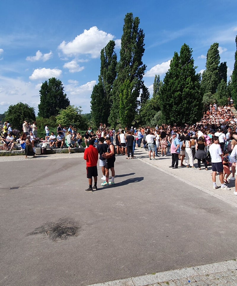 U-bahn en tram brengen ons weer naar het Mauerpark. De uithangplek zondags voor Berlijners die willen relaxen. Families zijn voltallig op kleedjes neergestreken op de grote grasvelden en starten hun meegenomen BBQ op. Er wordt op diverse manieren gesport, onder andere skaten maar ook basketballen. Aan de zijkant van het veld is het een drukte van belang rondom een cirkelvormig amphitheater. Hier kunnen mensen hun zangtalenten showen op een open podium in de vorm van karaoke. Wij krikken ons in en tussen de menigte en zien personen jong, oud, gehandicapt al dan niet geslaagde pogingen doen, die steeds weer worden beloond met een daverend en enthousiast applaus π. Het zijn de laatste wapenfeiten voor ons vandaag. Aan het begin van de avond zijn we terug in de camper en laten alle indrukken van vandaag weer bezinken.
