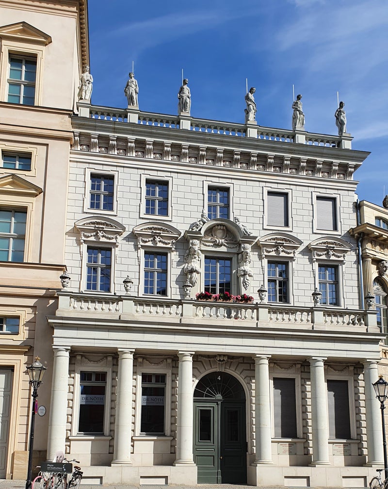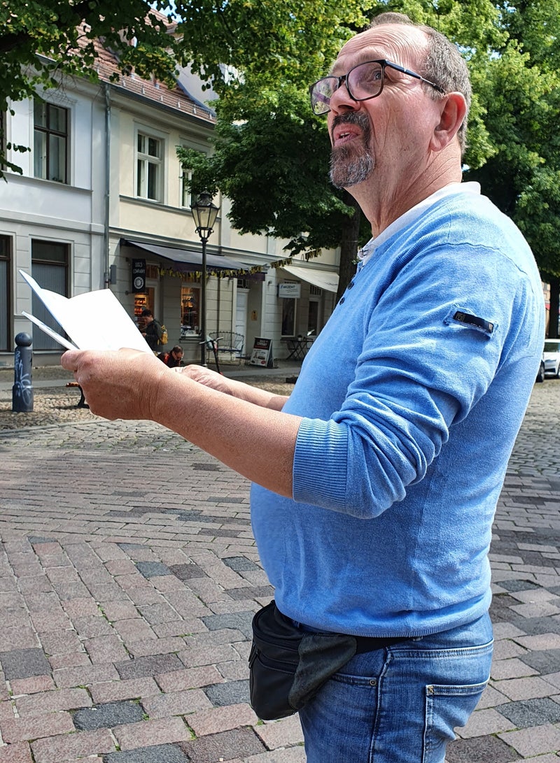 Na een smullunch met REWE-zaken, stappen we op de fiets en peddelen naar het centrum van Potsdam met zijn prachtige gebouwen. Niet verwonderlijk, het is door de eeuwen heen de residentie van keizers en koningen geweest. We parkeren de fiets en lopen enkele uren door de straten van het centrum met zijn vele markante gebouwen die alles een heel eigen historische uitstraling geven.