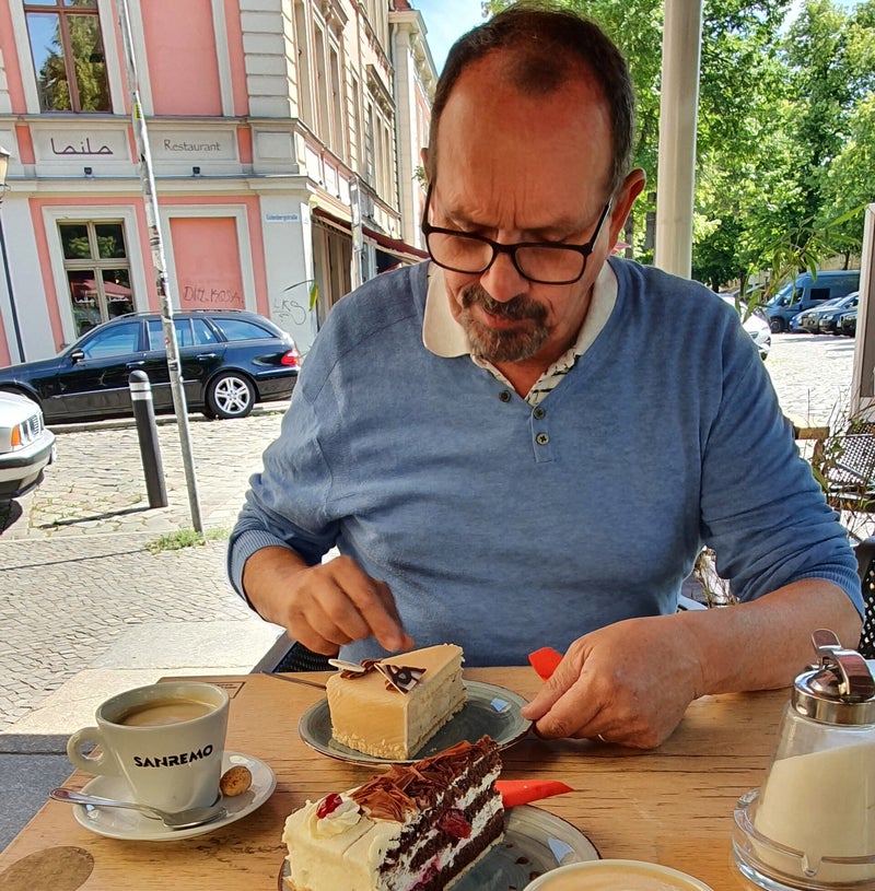 We pakken de tram richting centrum en vandaaruit een tram richting Kurfürsterdam. Bij een currywurst-kiosk eten we een hapje, alvorens ons in winkels te storten. Zo schaffen we in het iconische KDW-warenhuis een paar afgeprijsde mooie zomerbroeken aan voor mij en in een schoenenwinkel verderop twee paar schoenen in de uitverkoop. Dit alles in het kader van een bruiloft van een neef over 3 weken in Frankrijk. We besluiten ons bezoek aan Berlijn met een schnitzelmenu in daarom befaamde restaurant Faustus, heerlijk.