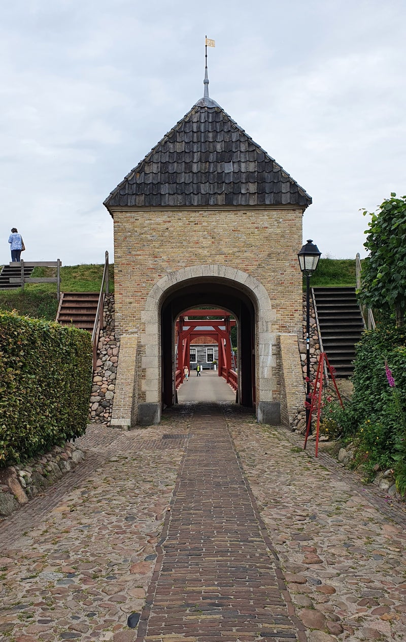 Tot ver in de 19e eeuw is het fort in gebruik geweest. Nu is het vooral een voor toeristen aantrekkelijk vestingstadje. Nadat we op het marktplein de fietsen hebben gestald wandelen we niet alleen door de straatjes maar over de vestingwerken heen. Zo rond het middaguur zetten we ons op een terras op het marktplein neer voor een broodje en een kop koffie.