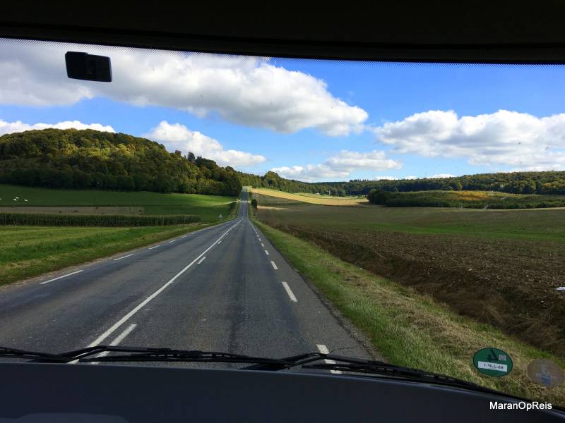 ooit zijn gebouwd, allen ontstaan vanuit een wedijver tussen kleine stadjes om het gebouw neer te zetten wat het dichts bij de hemel reikte. Een beroemde staat onder meer in Beauvais. Op het gemak verder huiswaarts gereden over allerlei kleine en soms verlaten routes, wat is Frankrijk toch mooi. Dit is toch veel leuker rijden dan over die stupide tolwegen, waar je alleen door grote bruine borden aan de kant van de weg wordt geattendeerd op de niet zichtbare bijzondere historie bezijden die weg. Overigens mijmeringen die verstoord worden door een steeds nijpere brandstof-voorraad en het gebrek aan tankstations op dit stuk route. De lage wijzerstand noopt ons om bij een Intermarché te tanken, die qua ruimte duidelijk niet is ingericht om een camper van wat formaat af te tanken! Enfin met het nodige gymnastische gekronkel werd deze horde toch succesvol genomen. Na Abbeville en Hesdin komen we bij Sint Omaar