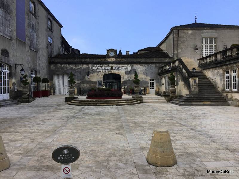 We duiken weer de kleine route in de campagne op en bereiken na een uur het op een heuvel gelegen mooie stadje Duras, waar onze aandacht wordt getrokken door een uit de kluiten gewassen chateau. We parkeren en wandelen over de streekmarkt die pal naast het chateau plaatsvindt. Na een bak koffie zetten we onze reis noordwaarts voort. In het begin van de middag naderen we de Cognacstreek en zien we steeds vaker in het zacht golvende landschap eindeloze keurig gerangschikte wijnstokken liggen.