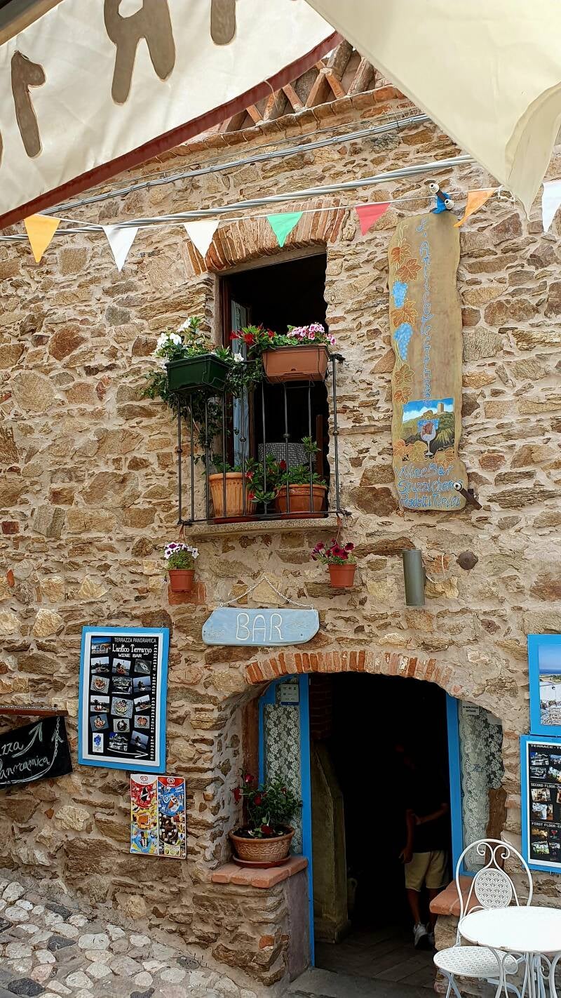 Het ochtendgloren wordt begeleid door het gezang van vroege vogeltjes 🎶🐦🎶🕊🎶. We nemen de tijd en starten kalmpjes op. Een bezoek aan de Antico Forno, het plaatselijke bakkertje met het nostalgische interieur, combineren we met een heerlijke grote latte machiato op het buitenterras van Caffe L'Angelo. Gelegen op het pleintje naast de Via Roma is het een ontmoetingsplek voor dorpelingen. Oude mannen begroeten elkaar met een langdurige ernstige handdruk, anderen voeren serieuze gesprekken met veel handgebaren en vrouwen wisselen lacherig hun laatste nieuwtjes en roddels uit. De sociale functie van dit terras verklaart ook wellicht de prehistorische prijzen, want we behoeven slechts € 2,80 af te rekenen.
