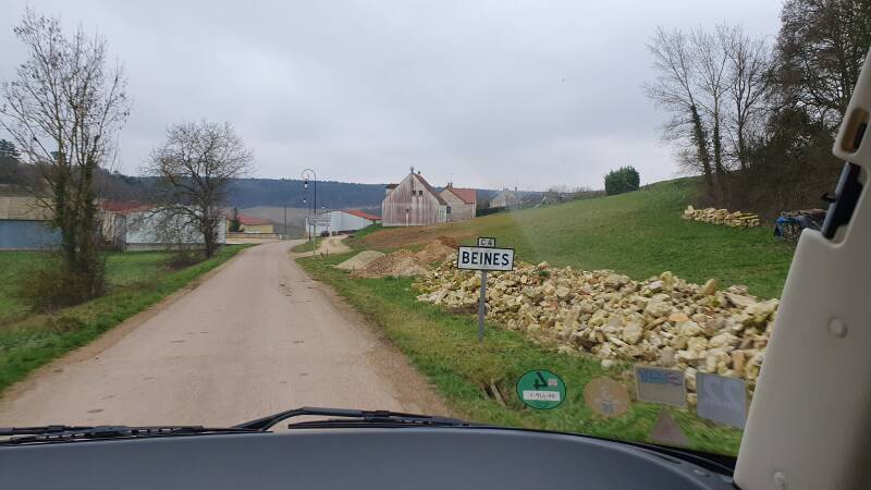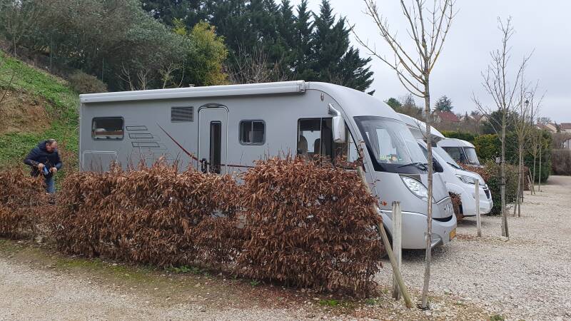 Via Reims en Troyes bereiken we rond 16 uur de CP in Beine, niet ver van Auxerre. Het is een groot beschut parkeerterrein van een Chablis wijnhuis aan de rand van het dorp. Hierop zijn een zestal door heggen gescheiden camperplekken gemaakt met gratis elektra en voorzieningen. De meegebrachte erwtensoep smaakt uitstekend en past helemaal bij dit koele winterweer. We geven de schotel en tv nog een zwengel zodat de smartcard wordt gere-activeerd. Nu wat ontspannen.