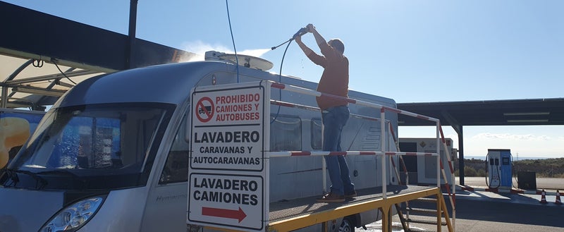 Nabij Almeria stoppen we bij een Repsol tankstation wat we kennen van een eerdere reis. Hier servicen we de camper volledig af en bij de wasplaats soppen we de camper schoon. Middels een zijstellage is zelfs het dak goed bereikbaar voor alle was handelingen. Alle pekel en vuiligheid verdwijnt als sneeuw voor de zon, zullen we maar zeggen.