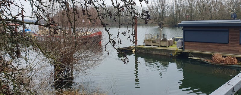 Het is hoog water als we vertrekken; de knotwilg op het talud staat volledig onder water