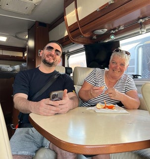 Vanmorgenvroeg gaan de hemelpoorten open boven onze locatie en stort het water omlaag. Zelfs wat kleine dakluiken moeten we dichtdoen, want de wind stuift het water zo naar binnen. Als het licht wordt is de camping één grote waterplas 💧. Ik ben daarom blij dat we een betonnen plateau als standplaats hebben uitgekozen. Het geeft wat minder modderzooi.