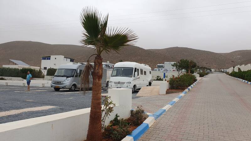 We zetten Kees en Trui af en rijden kalmpjes de 12 kilometer naar Sidi Ifni weg en vinden een plekje op de overvolle camping Grancanaria.