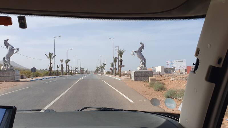 In Tiznit parkeren we vlakbij de Bab Jdid die toegang biedt aan de souk. Eerst tanken we wat geld en doen wat boodschappen. Na een nos-nos op El Mechouar plein rijden we verder naar het 20 kilometer verderop gelegen Aglou aan de kust.