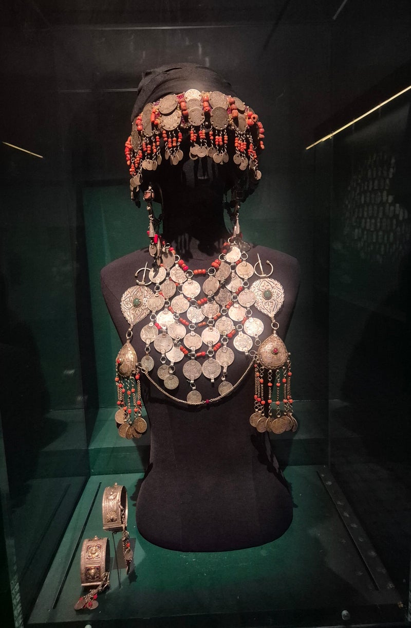 De collectie vangt aan met de ontwikkeling in tijd van sieraden in Marokko en de techniek hoe en de belangrijkste plaatsen waar die worden vervaardigd. Ook de verwerking van edelmetaal (zoals gouddraad) in kleding komt voorbij, alsook de decoratieve toepassing daarvan op wapens.