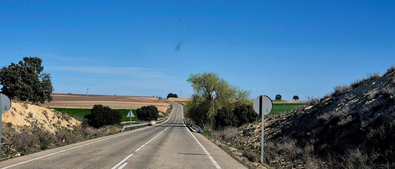Het landschap van de Spaanse hoogvlakte variëert voortdurend, dan weer rijden we tussen velden met wijnstokken zover als het oog reikt, dan weer duiken we omlaag een brede vallei in en moeten aan de andere kant weer kronkelend omhoog. Maar ook rijden we stapvoets door kleine straatjes van verstilde plaatsjes en dorpjes.