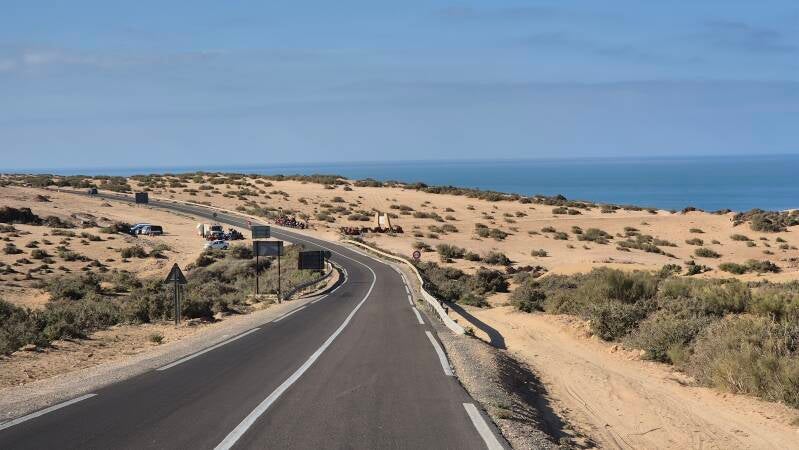 We rijden verder in het heuvellandschap, waar begroeiing steeds schaarser wordt. We draaien om een dorp heen en nemen een heus colletje en dalen via hairpins aan oceaanzijde weer omlaag. Op een zeker punt zien we in de verte wederom Imsouane liggen, inmiddels toch wel na 25 kilometer te hebben afgelegd.