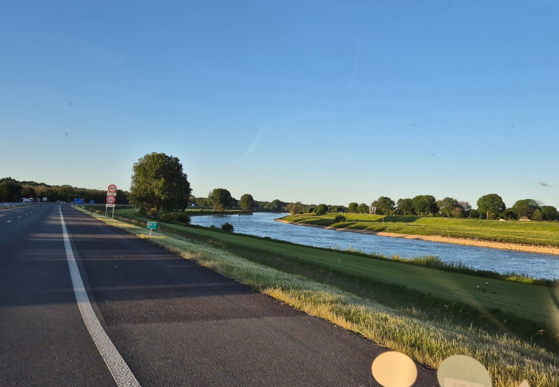 Na een zeer goede nachtrust gaan we om 9 uur onderweg met halfbewolkt weer en met op dat moment weinig verkeer. Van het landschap naast deze Autobahn-route word je weinig vrolijk, maar op deze weg ontlast de cruisecontrol de voet met jicht. Daar gaat het overigens goed mee, de prednison is effectief aan de gang om de ontsteking de kop om te draaien en de pijn is zo goed als weg.