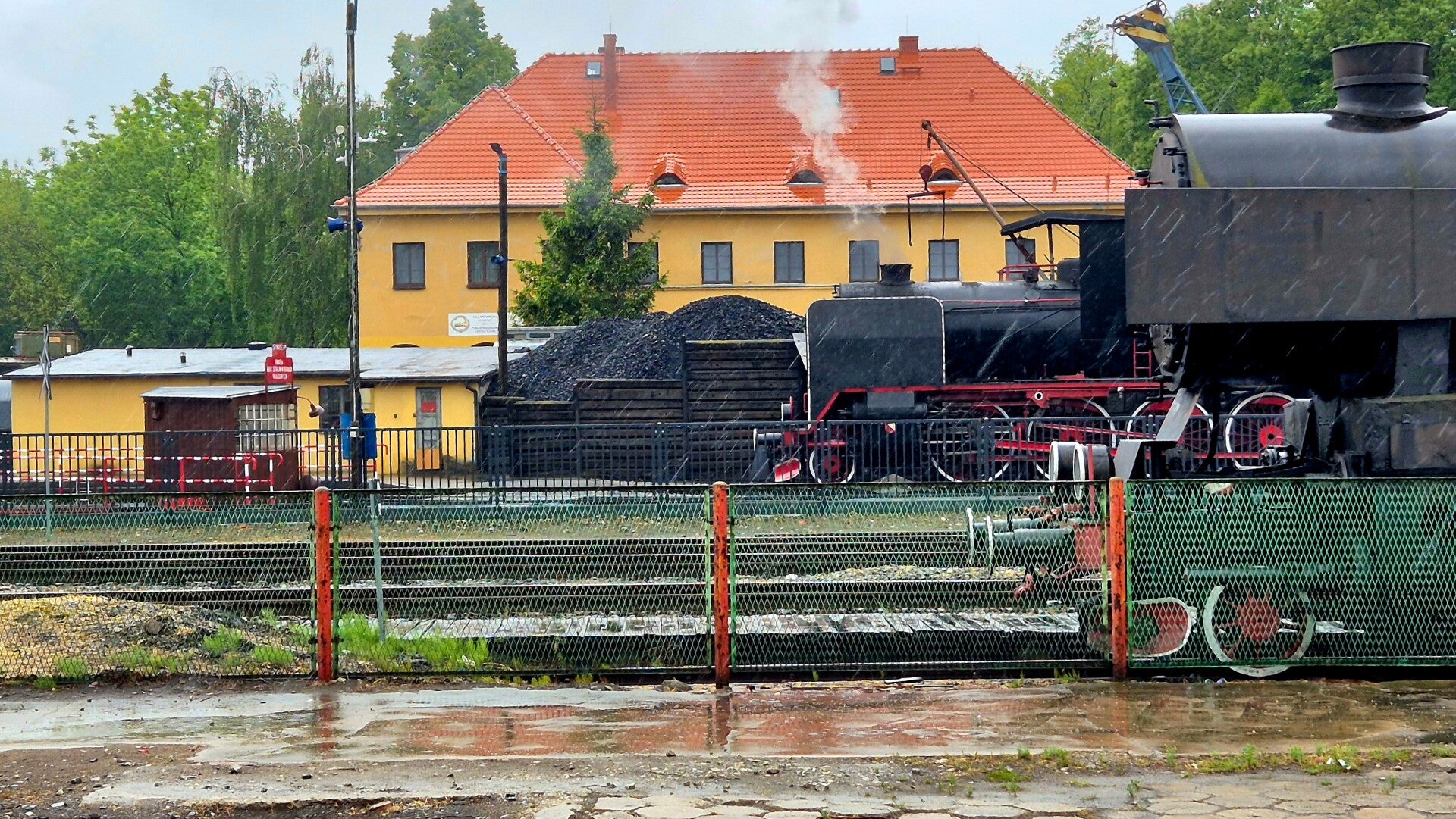 Deze ochtend valt de regen gestaag naar beneden. Voordat we Wolsztyn verlaten rijden we met een omweggetje naar het oude spooremplacement waar een grootse verzameling stoomlocomotieven, tenders en wagons vele sporen bezetten. Het merendeel van het materiaal ziet er klaar voor aktie uit en dat klopt. Nadat tot 2020 op meerdere spoorlijnen nog stoom werd ingezet, gebeurt dat vandaag de dag nog steeds twee maal per week op twee spoorlijnen voor regulier vervoer. Aan goed bruikbare locs tellen we er zo maar een vijftiental en er zijn ook voldoende mooie reiswagons. Verderop zien we grote voorraden kolen en hout liggen en watertanks met de bekende zwenkarmen.