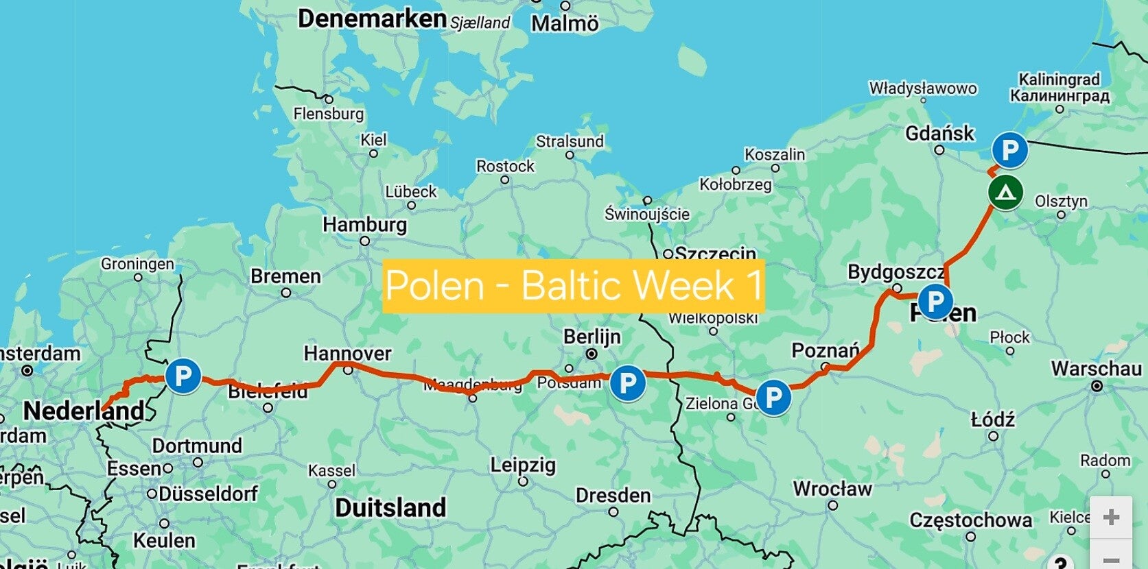 De overnachtingsplek een simpele parkeerplaats in Wolsztyn bereiken we aan het eind van de dag. Terwijl wij onderuitzakken klettert de eerste regenbui alweer omlaag.