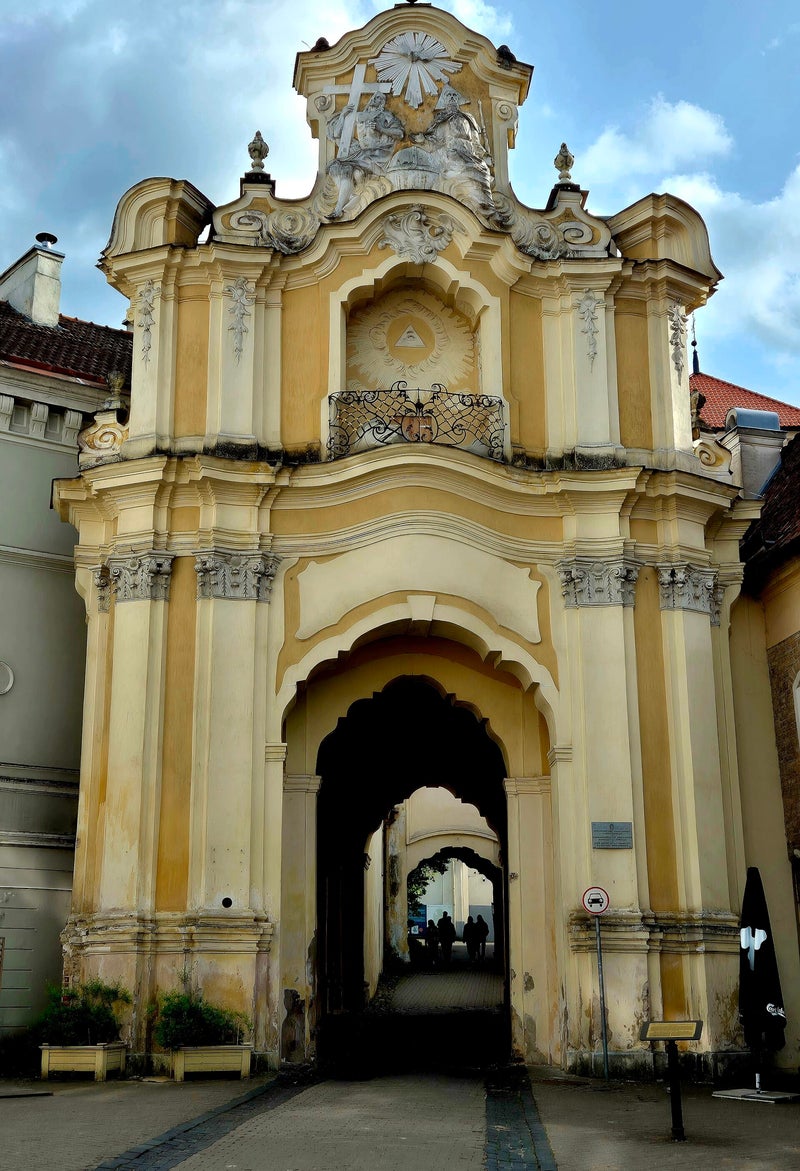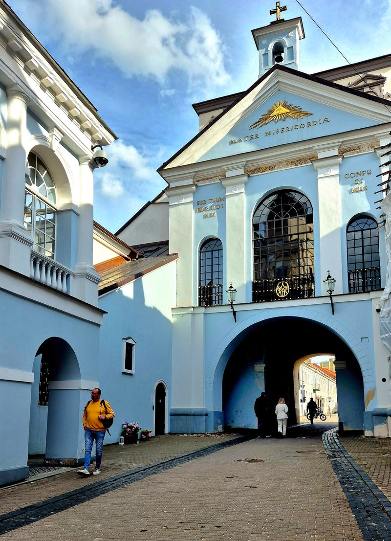 Niet ver van het prachtige gebouw van het Astoriahotel komen we bij de Ausros Vartal, de Poort van het Morgenrood, de enig overgebleven stadspoort van Vilnius. Boven deze stadspoort bevindt zich een 17e eeuwse kapel met een icoon van de maagd Maria, een heiligdom voor het religieuze Litouwen. Zelfs de Sovjets durfden het niet aan deze plek te sluiten of te verwijderen. Binnen wordt vrijwel continue door Litouwers geknield gebeden voor de kostbare icoon.