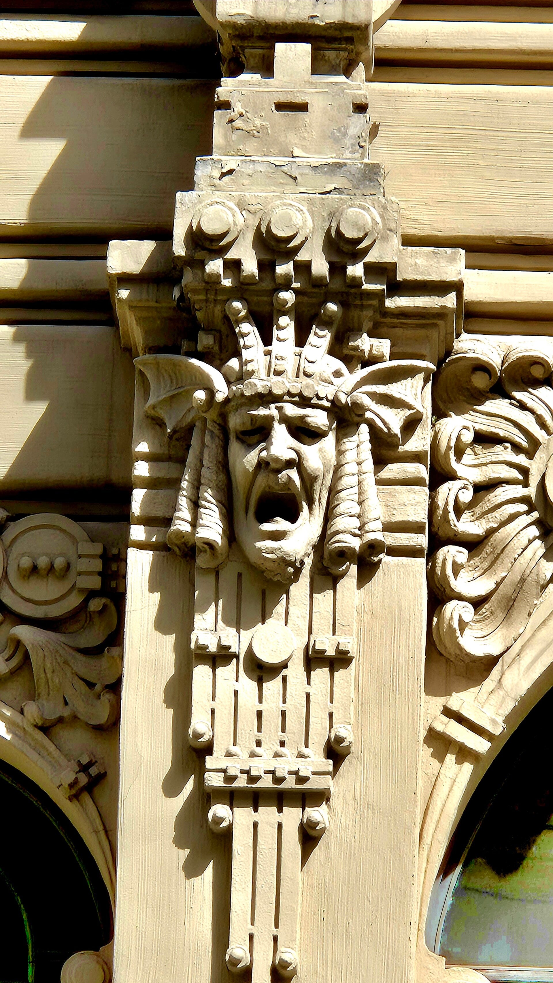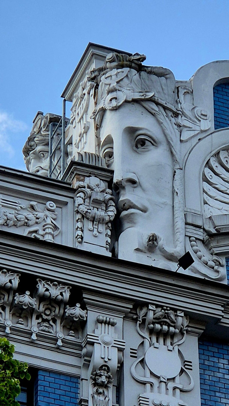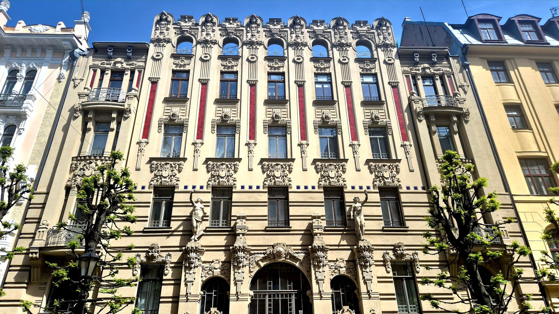 De Bolt-app werkt voortreffelijk. Binnen een paar minuten worden we aan het eind van de ochtend opgepikt door een felgroene Tesla. Bestuurder Mãrtińs kletst honderduit en brengt ons naar Albert Iela in de Art Nouveau wijk, de straat met de meest extravagante voorbeelden van deze bouwstijl.