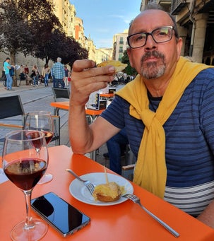 Op een terrasje drinken we wat met de nodige tapas, onderwijl genietend van de acrobatiek van een straatartiest. We doorkruisen nog wat straatjes met nog meer artiesten, schilders en kraampjes. Het wordt echter steeds drukker dus besluiten we camperwaarts te gaan. Rust.