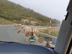 Daar duiken we een klein weggetje op het prachtige Picos de Europa in. Nu krijgen we het echte werk voor onze kiezen, stijgen en dalen op de smalle bergweggetjes, soms bevolkt door rondkuierende koeien. Maar we genieten van het prachtige natuurschoon en de fraaie verzichten, die worden voorgeschoteld.