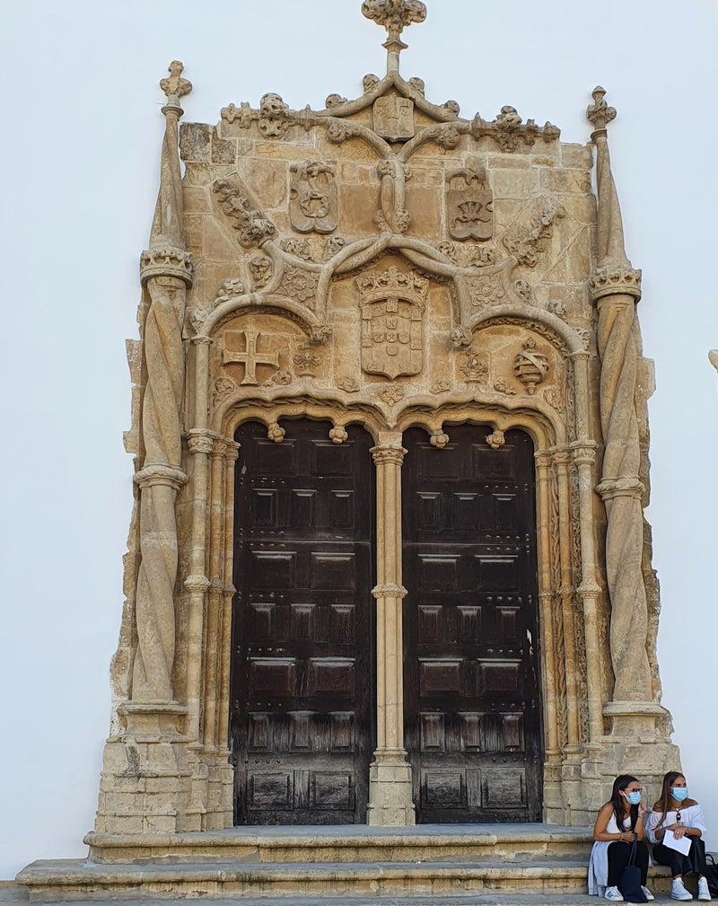 Vanmorgen op tijd opgestaan en André is naar de Pingo Doce gelopen, zo'n 600 meter verderop voor wat brood en beleg. Kalmpjes aan ontbeten, wat gecleaned en opgeruimd en aan het begin van de middag na de lunch naar de stad gegaan. Deze keer met een Uber-taxi die ons boven in de stad bij de kathedraal Sé Velha afzet. We gaan allereerst deze kathedraal en klooster bekijken en lopen daarna verder omhoog naar de universiteitsgebouwen.