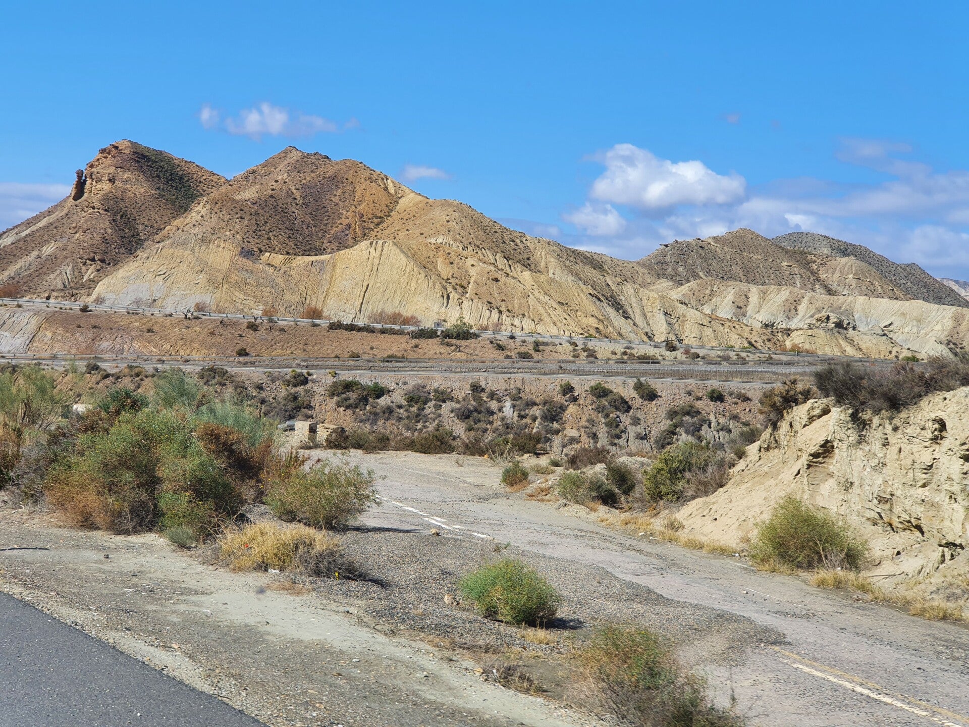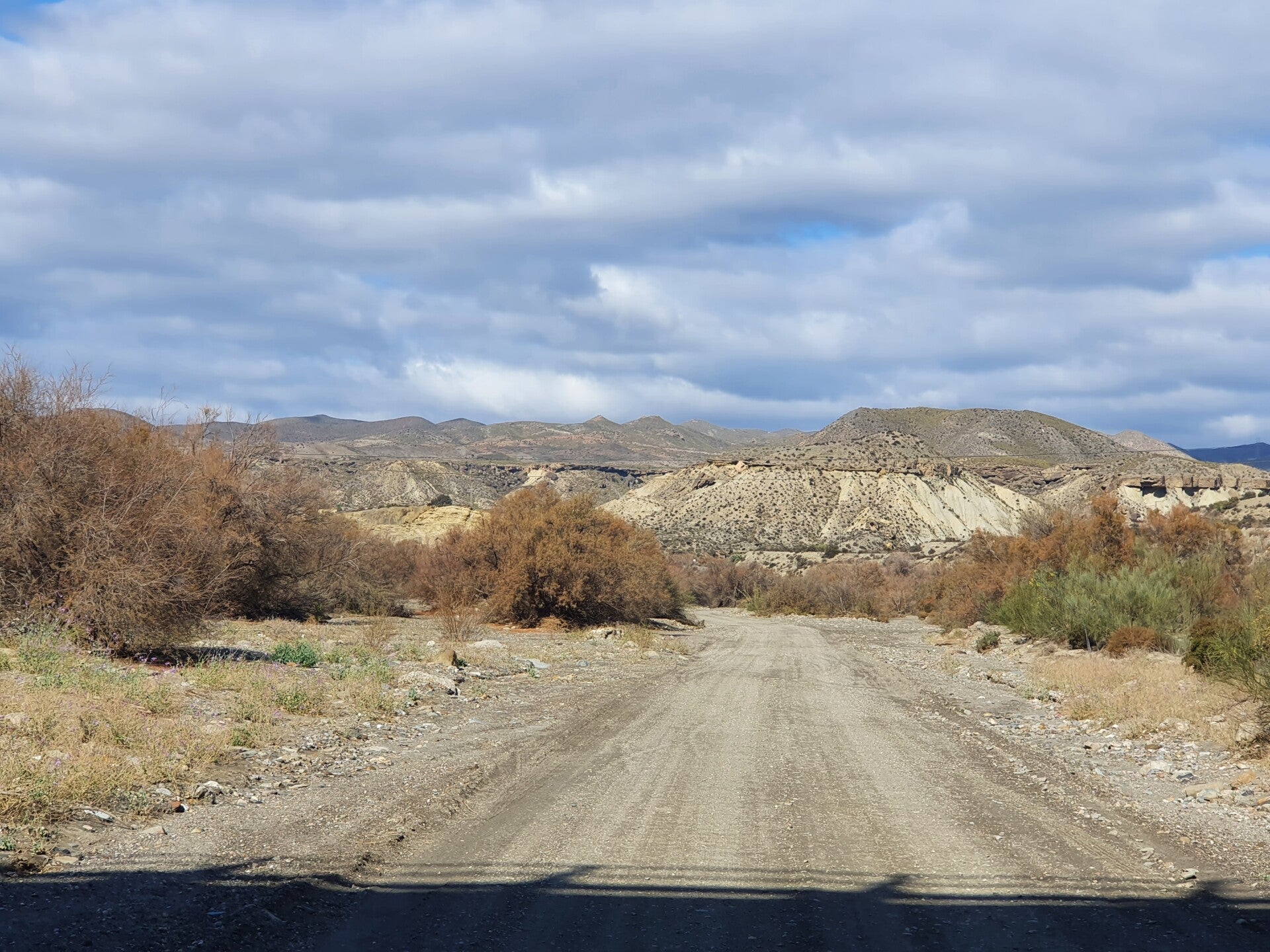Prachtig uitzicht op de vroege morgen, na een koude nacht. Met enige moeite verlaten we de P en zetten koers naar een tankstation in de buurt waar we kunnen servicen. Na een cortado weer terug richting Desierto de Tabernas. Dit woestijngebied is in het verleden decor geweest voor vele westernfilms, zoals o.a. The good, the bad and the ugly, A fist full of dollars, maar ook Indiana Jones and the last crusade. Ook veel scènes uit bekende filmseries als The game of Thrones en Starwars zijn hier opgenomen. Op de afslag van de grote weg staat een cowboy te paard ons al op te wachten, want even verderop is ook nog een themapark gevestigd. De omgeving net voorbij het themapark is prachtig en vertoont inderdaad de filmische desert-look. In de diepte ontwaren we een heus Fort Bravo, wederom een plek voor de dagtourist. Er worden daar westernshows gegeven en dat slaan we over. Het 2 kilometer verderop gelegen plaatsje Tabernas, weliswaar naamgever van het gebied, stelt niet veel voor.