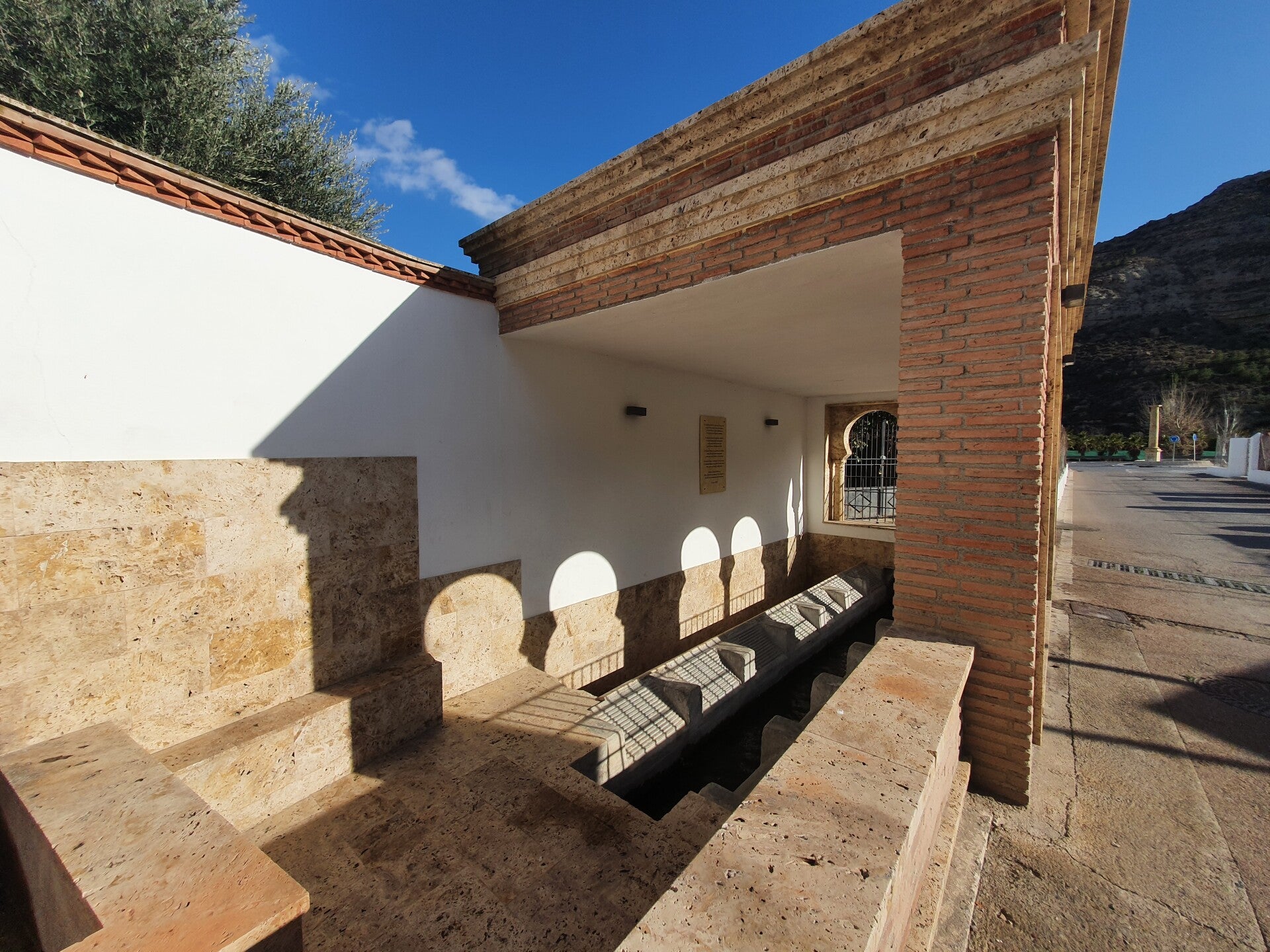 Het vers geperste sinaasappelsapje van de buurboom smaakt uitstekend bij het ontbijt. Voor vertrek nog wat van dat fruit geplukt voor een tweede ronde. Veel bomen dragen overigens nog hun vruchten, terwijl de oogsttijd bijna voorbij is. Het heeft te maken met de momenteel belachelijk lage kiloprijs van € 0,03 die men voor deze vrucht ontvangt. Dus er blijft het nodige ongeplukt. We rijden dieper de Alpujarras in met een steeds warmer zonnetje in een strakblauwe lucht. In Canjayar is een gratis serviceplek, waar we dankbaar gebruik van maken. Een broodje gekocht in het plaatsje en mensen keken verbaasd op toen we met ons campergevaarte door hun ministraatjes reden. Buiten het dorp weer prachtige vergezichten, witte dorpjes die tegen berghellingen zijn weggeplakt. Via Fondon bereiken we Fuente Victoria en maken een cortado-stop bij een kleine café. Dos cortados, € 2,20 por favor 👍, heerlijk.